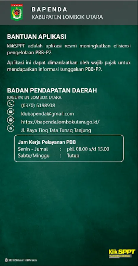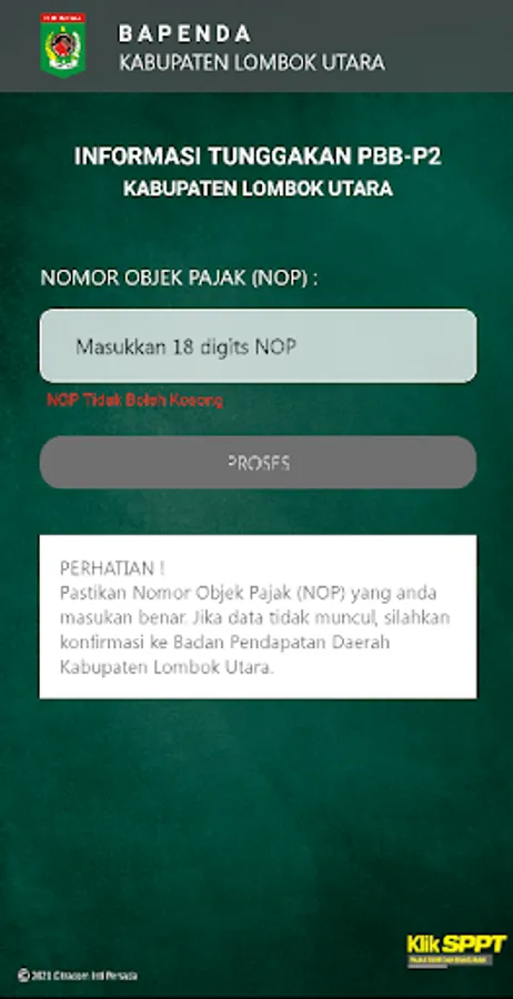 Click SPPT is the official application of the North Lombok Regional Revenue Agency which contains information on North Lombok PBB-P2 arrears and submission of PBB-P2 SPPT. This application can be used for taxpayers who want to know the amount of PBB-P2 arrears in North Lombok and officers who will carry out SPPT submissions to taxpayers.