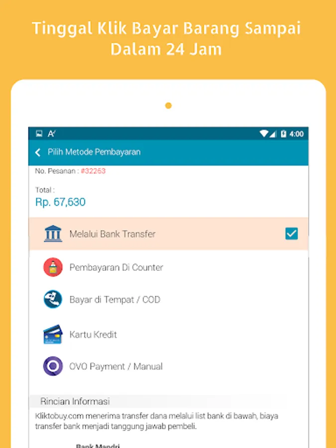 - BACS (Bank Transfer Mandiri, BCA & DBS)