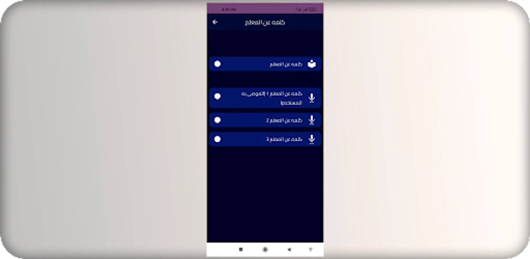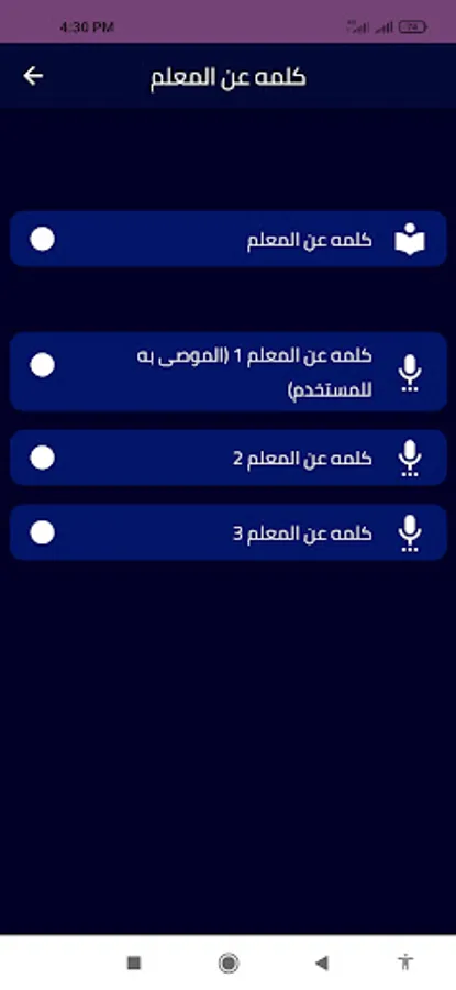 يمكنك التنقل بين أزرار تطبيق كلمه عن المعلم بسهولة