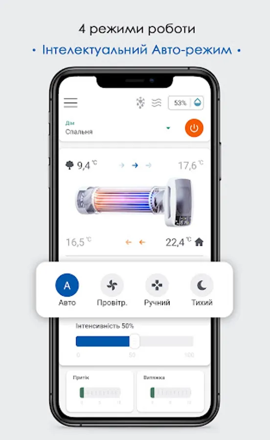 • Manage 4 operating modes of recuperator depending on your needs and room conditions;