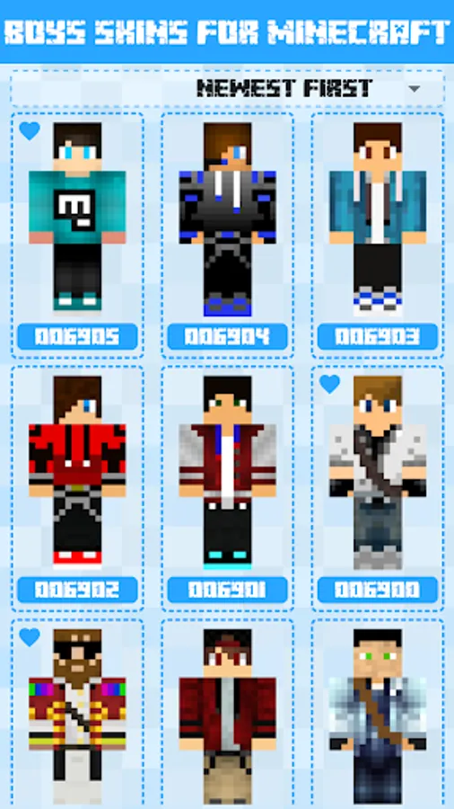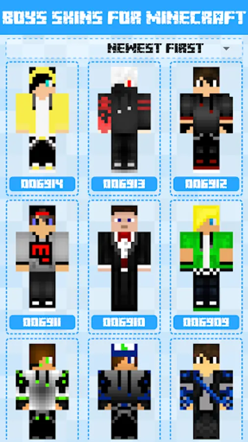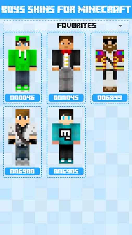Boys Skins for Minecraft PE (Pocket Edition) allows you to choose and apply a skin to your Minecraft character for free with just the touch of a button! There are over 6900 skins to choose from, with more added constantly.