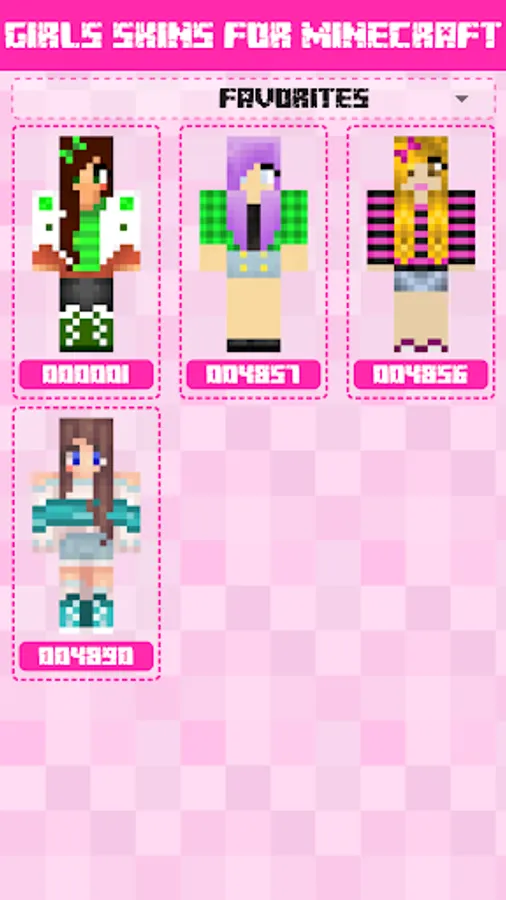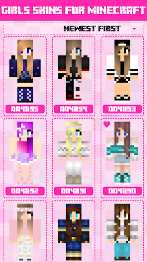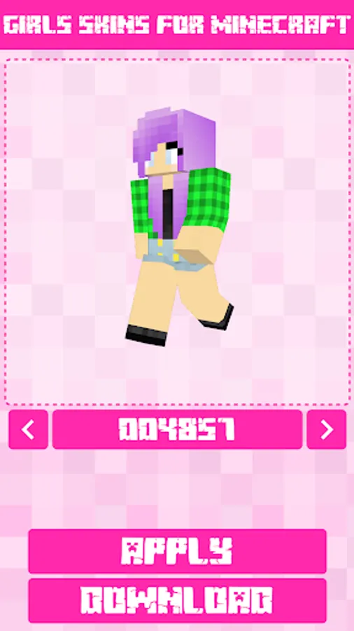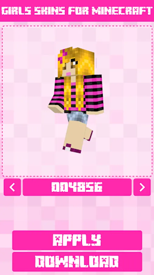 Girls Skins for Minecraft PE (Pocket Edition) allows you to choose and apply a skin to your Minecraft character for free with just the touch of a button! There are over 4890 skins to choose from, with more added constantly.