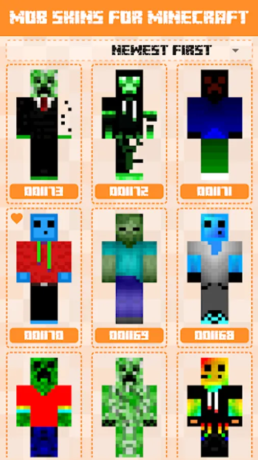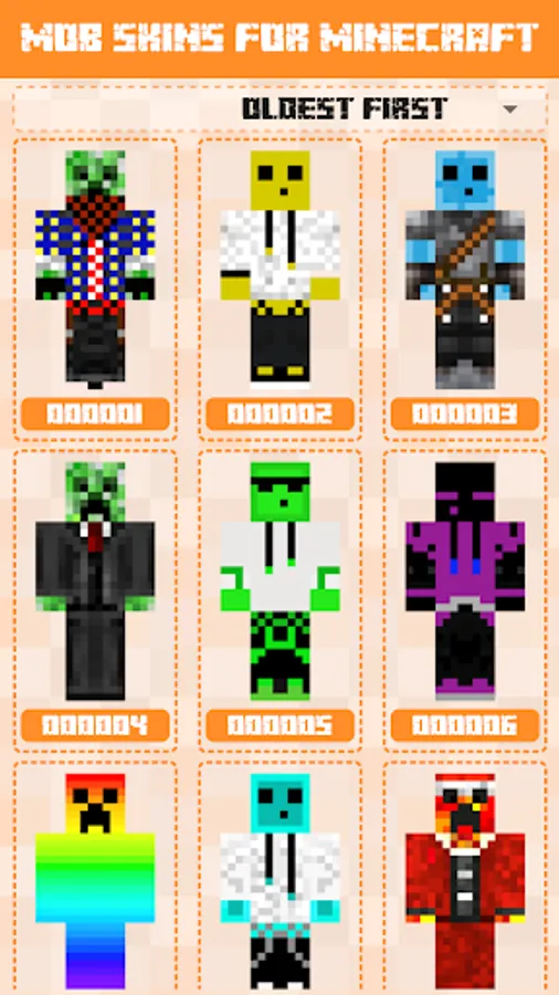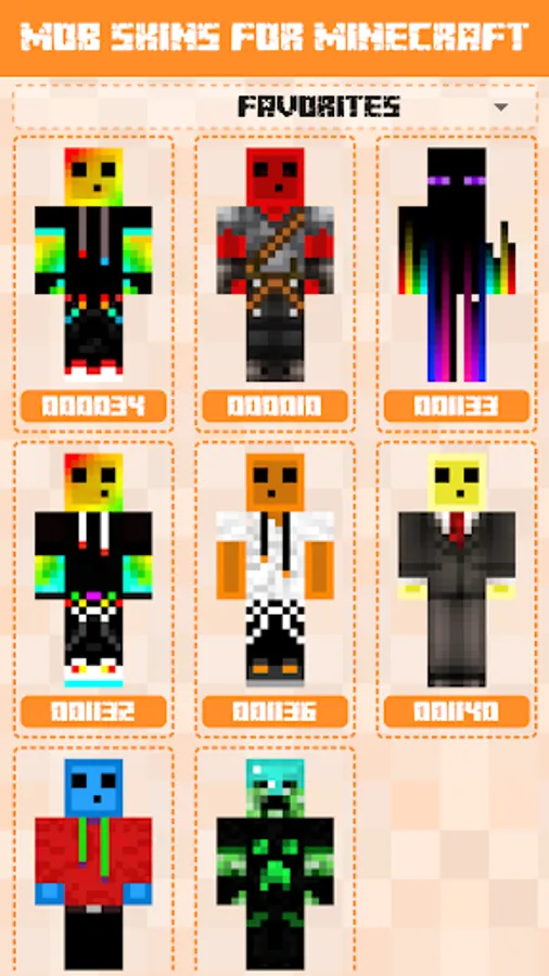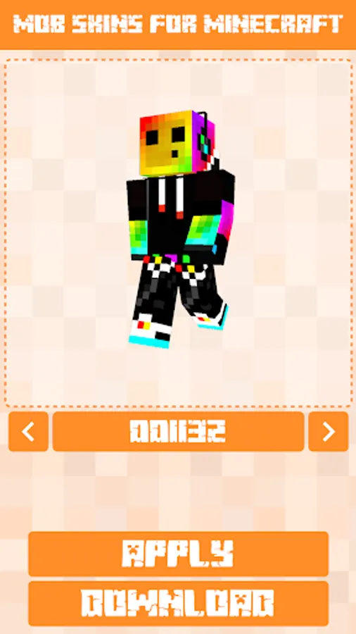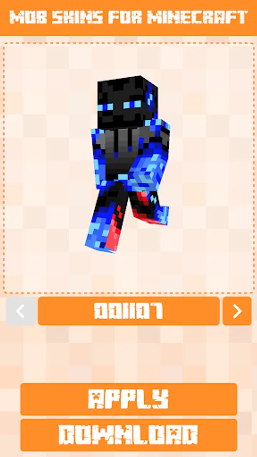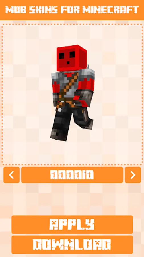 Mob Skins for Minecraft PE (Pocket Edition) allows you to choose and apply a skin to your Minecraft character for free with just the touch of a button! There are over 1190 skins to choose from, with more added constantly.