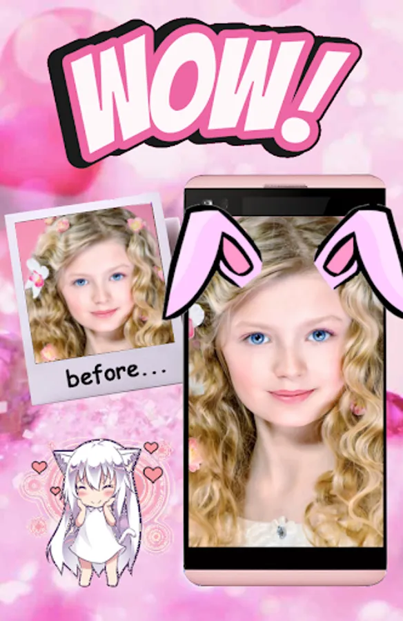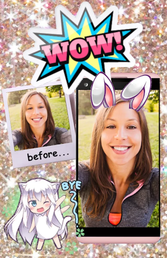Bunny ears: rabbit face photo editor is a photo editing application that can transform you into a funny face with a variety of cute sticker photos