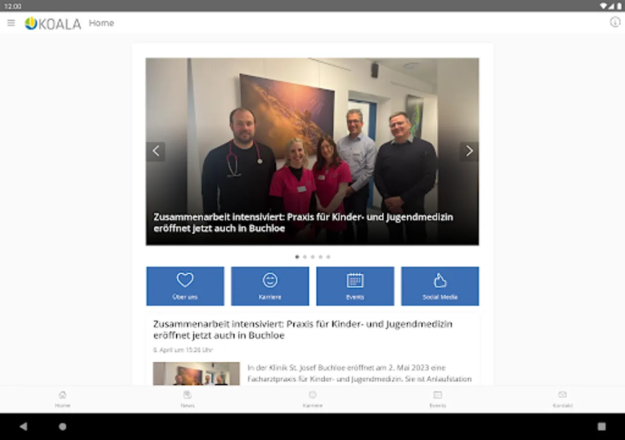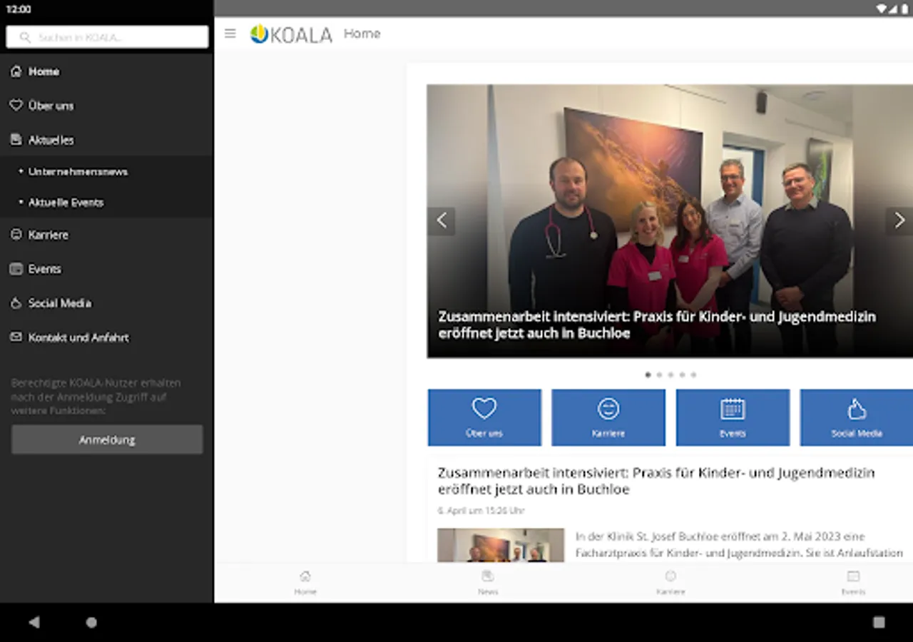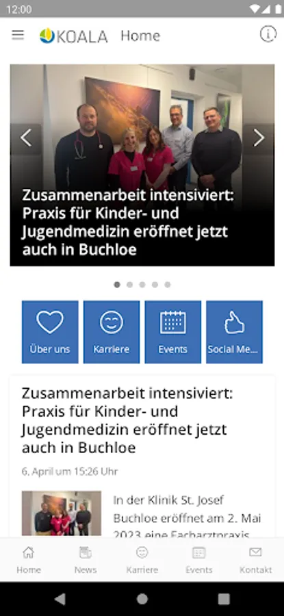 KOALA is the communication app of the Ostallgäu-Kaufbeuren clinics, which, with around 2,200 employees, stand for high-quality medicine at the three locations in Kaufbeuren, Füssen and Buchloe. The app provides up-to-date information about the Ostallgäu-Kaufbeuren clinics, their associated specialist practices and nursing schools. The offer is supplemented by press releases, access to the calendar of events and the career portal.