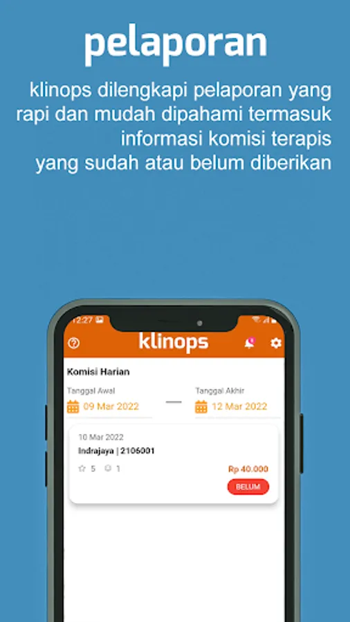 klinops is an application that simplifies the operational management of a medical clinic. klinops makes it easy for patient registration, therapy reservations, queue management, automatic reminders, to payment processing and transaction reports.