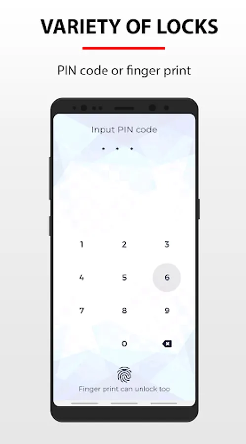 ✌ Diverse ways to protect applications: you can use a PIN, pattern or fingerprint, as you like.