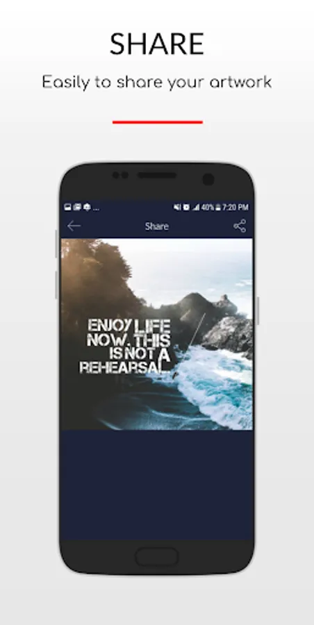 also helps you find ideas for your status. You can easily share the quotes we provide or your artwork to social networks like Facebook, twitter, instagram, whatsapp or any other.