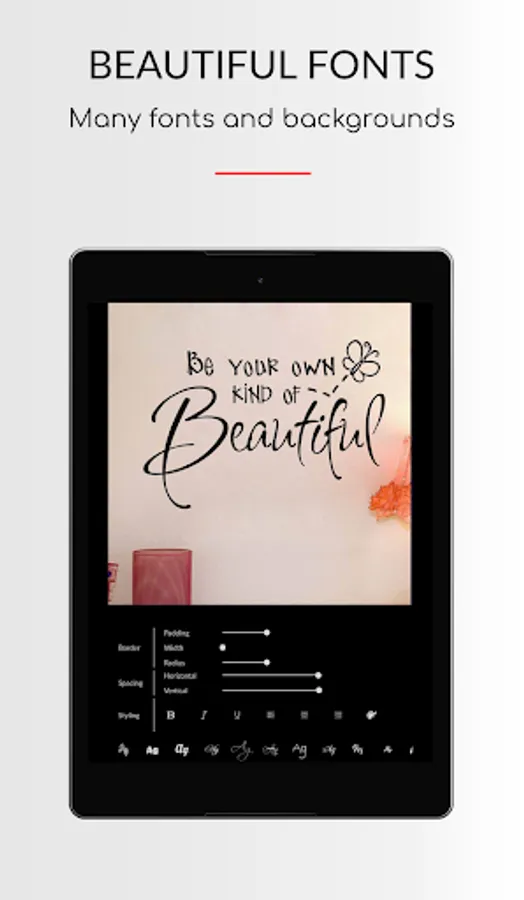 Hundreds of beautiful fonts, lots of beautiful quote background pictures, nice quotes are waiting for you to use. They help you create your own custom quote images easily.