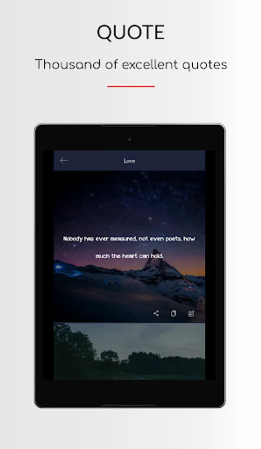 ⚡ Easily create quote pictures from beautiful backgrounds library and rich ideas. You can also use your own ideas with the pictures available in your library or taken from the camera. So this is the best photo with quote app for you to use.