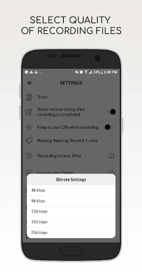 ⚡ Changeable bitrate from 48 up to 256 kbps.