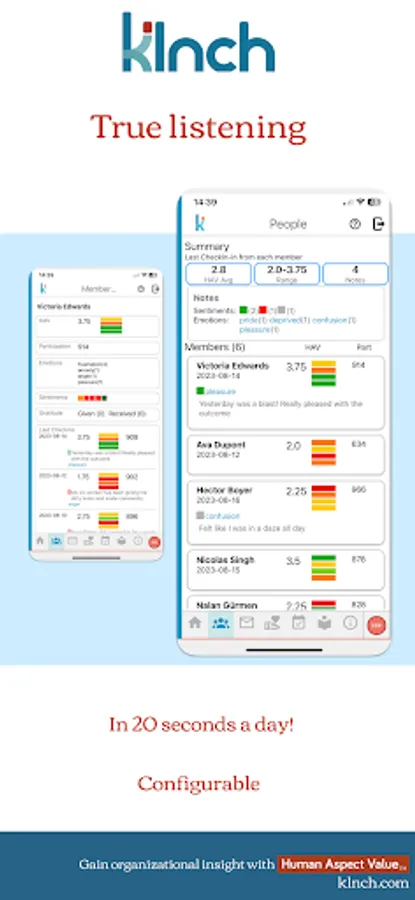 Klnch People Platform offers real-time, visual insight into the wellbeing of your organization. With just seconds a day, show your people you care.