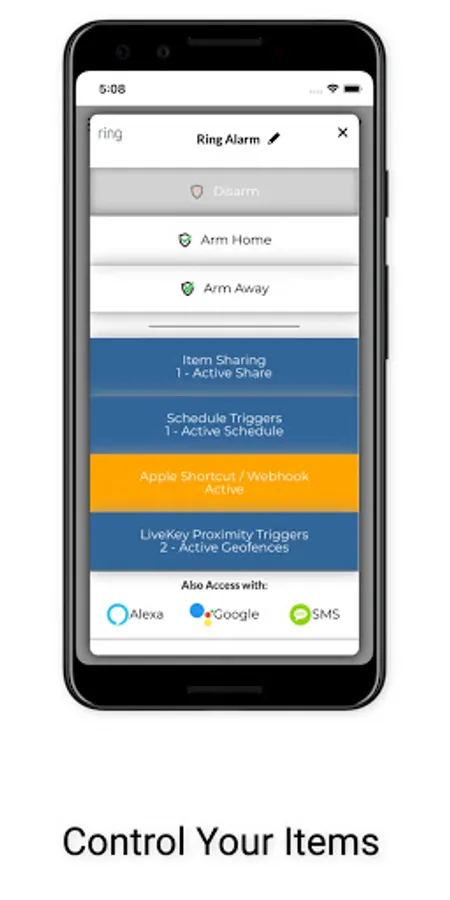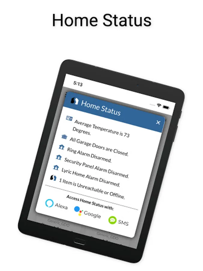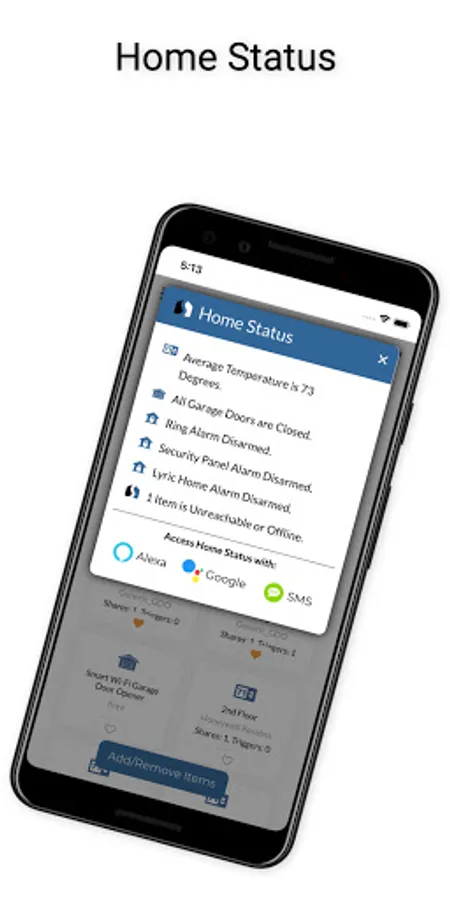 Step 2: Access and control items with at app or any one of a variety of voice compnaions and SMS.