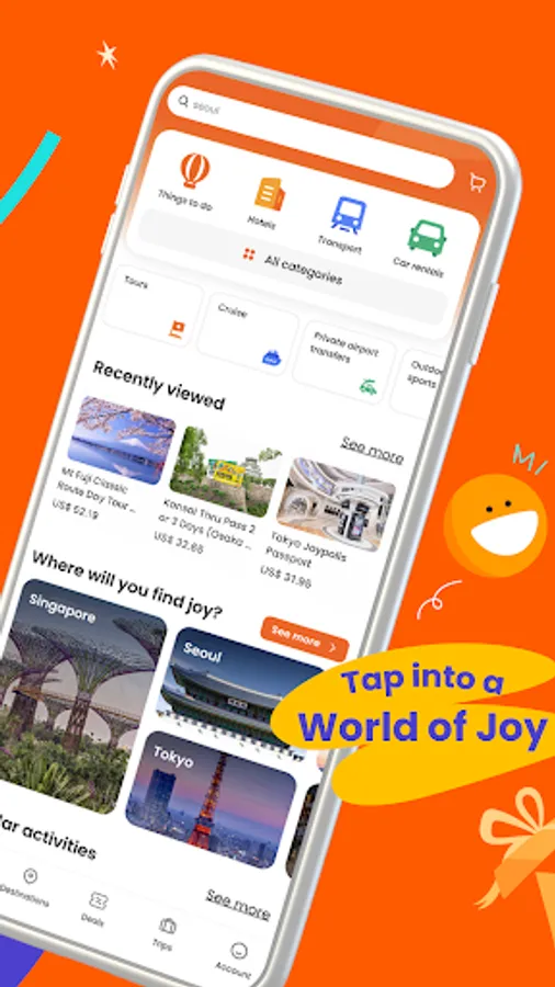Explore handpicked experiences and get travel deals for hundreds of destinations. Attraction tickets in Singapore? Car rentals in Japan? Tour packages in South Korea? Or hotels for families? When you’re on Klook, you’re seeing the best of every place in the palms of your hands.