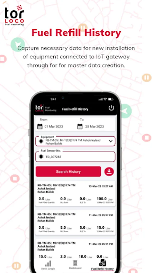 Facility to capture fuel filling through Bluetooth based fuel sensor or through digital log book to enable accurate reconciliation & tracking.