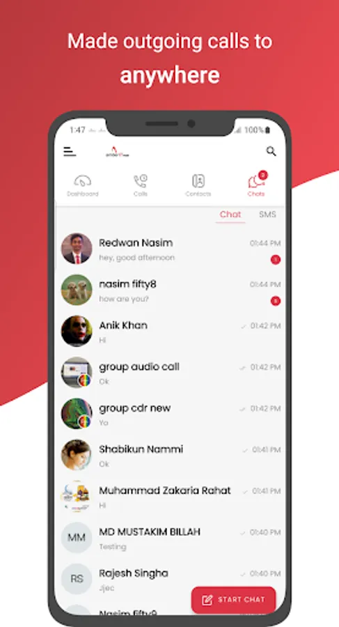 • Make outbound calls to your customers anywhere right inside from Amber IT PABX app