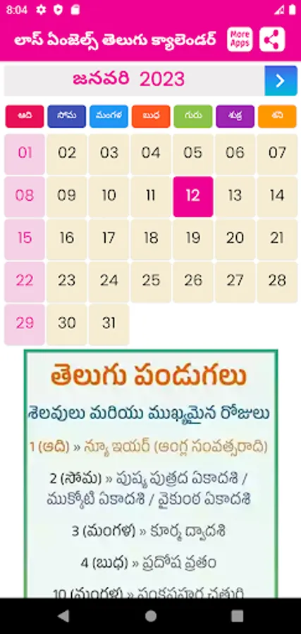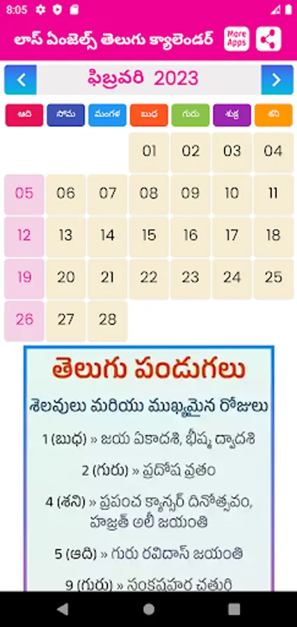 Telugu Daily Calendar & Panchangam 2023 app Very Small Size & Very Use Full For Daily life Style.