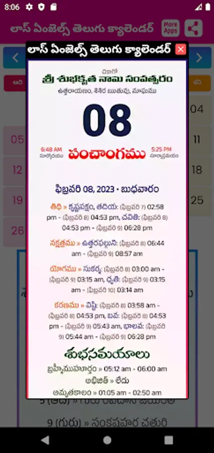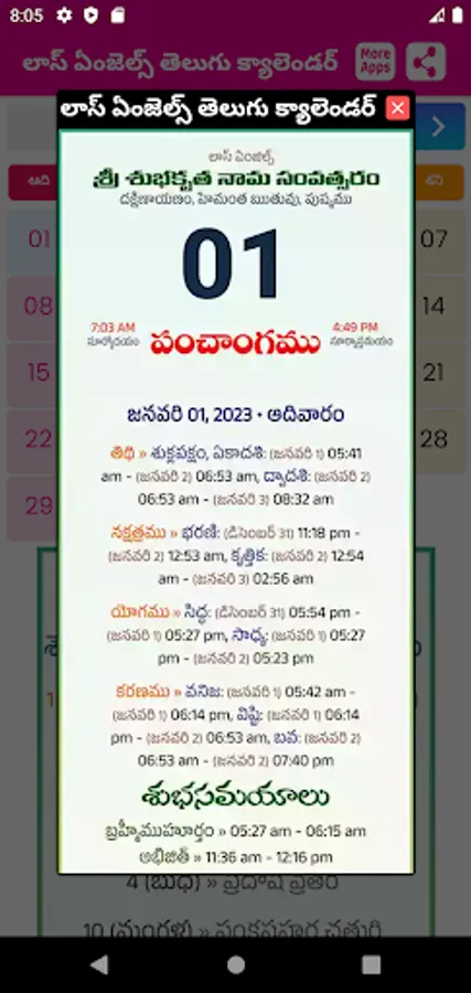 **** Telugu Daily Panchangam 2023 For California Telugu People Because its Los Angeles Time Zone.