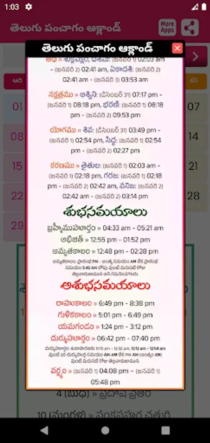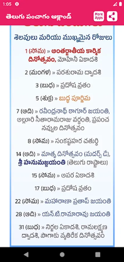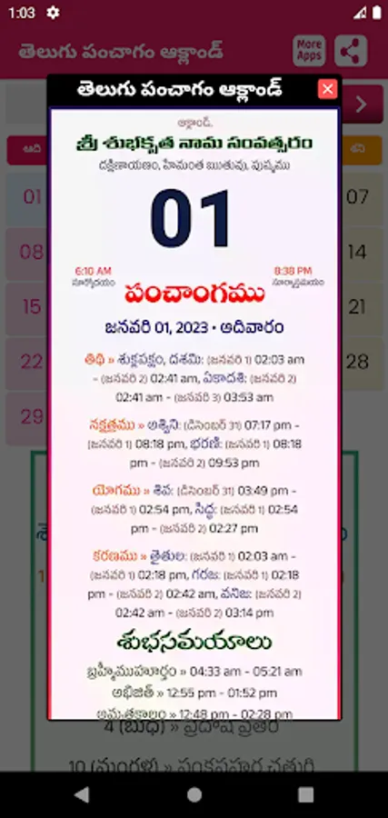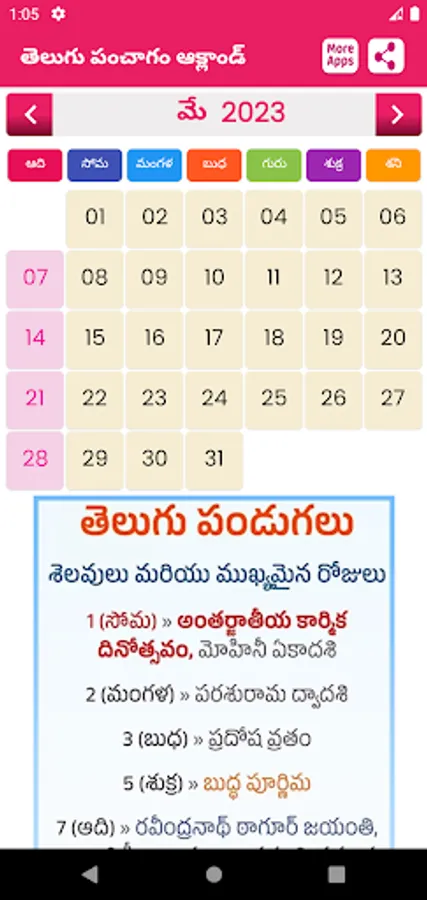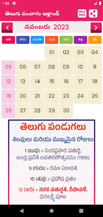 Telugu Daily Calendar & Panchangam 2023 app Very Small Size & Very Use Full For Daily life Style.