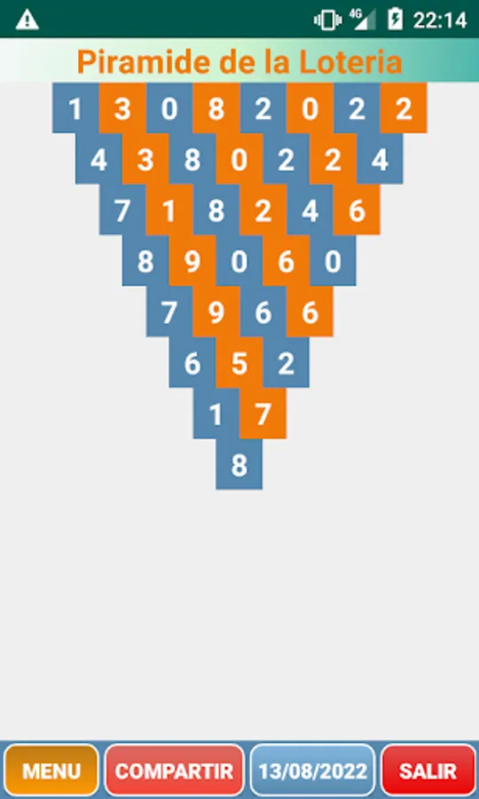With the application of the Pyramid of the lottery you will be able to consult the best numbers of the date to play in the lottery and the lotto