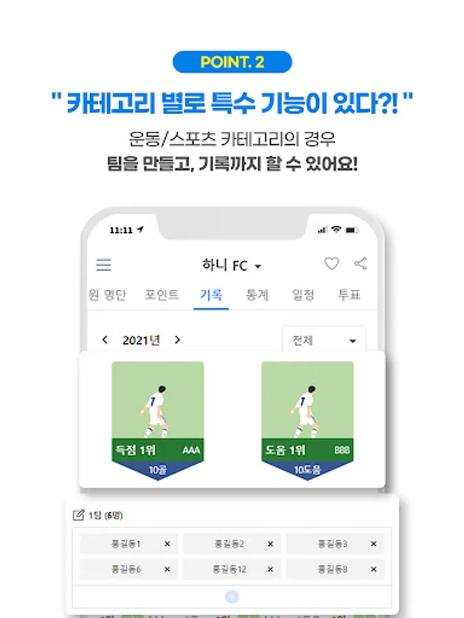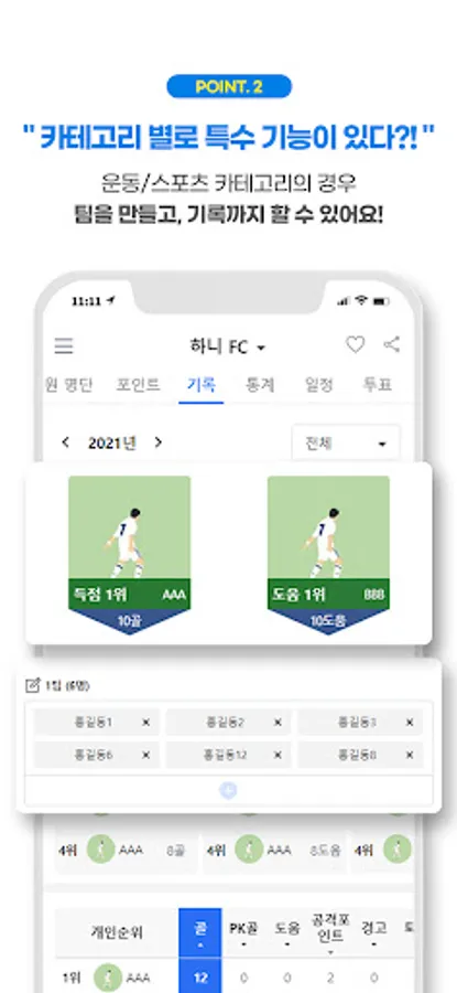Put and manage goal/assist data in sports categories such as soccer, futsal, etc.