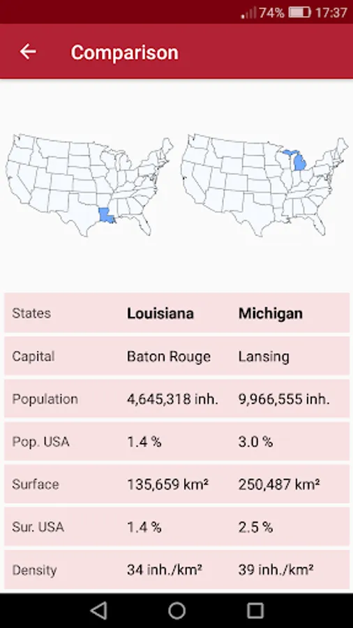 ● Reference chart of every state’s geography and demography (population, surface...)