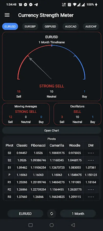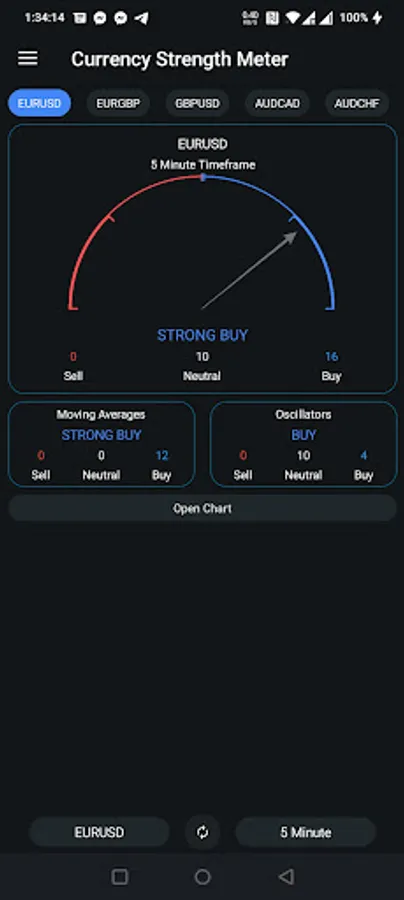 You can visually check currency pair strength using this app. It will calculate current strength of a given currency pair, for the given timeframe, using different trading indicators and tools such as Moving Averages, Oscillators etc. Then it will show you the overall strength of the particular currency pair on a meter.