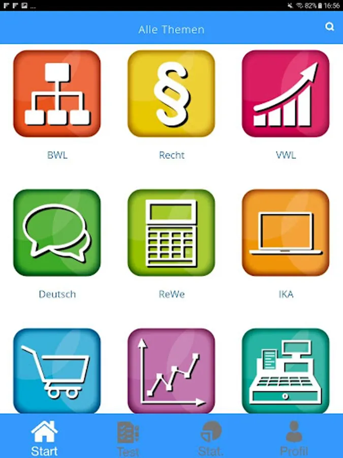 This KLV learning application, you can check your knowledge, etc. for various subject areas such as business administration, accounting, economics, law, IKA, German, retailing knowledge economy in the retail sector with learning questions (single choice) and test questions (multiple choice) and acquire. You achieve a high audit.