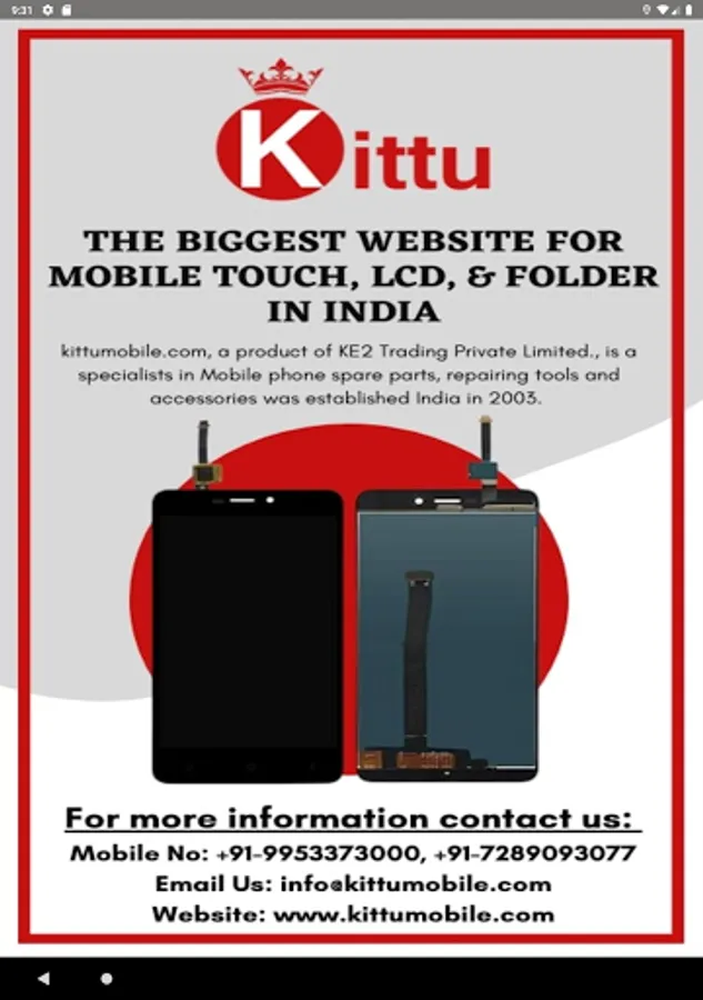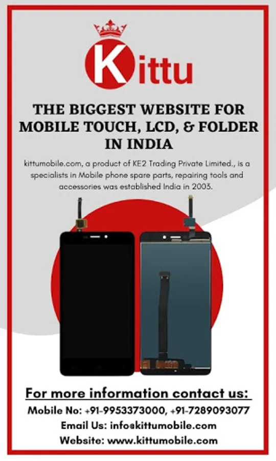 kittumobile.com, a product of KE2 Trading Private Limited., is a specialists in Mobile phone spare parts, repairing tools and accessories was established India in 2003. Today we provide a one-stop solution for all your mobile spares, repairing accessories and other mobile phone accessories.