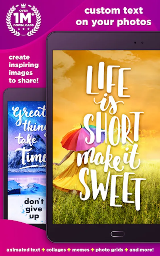 Text Over Photo is the best way to create a message with Text on Photos and Share it with friends and family. You can Find Photos for any occasion with search features add Text on photos.