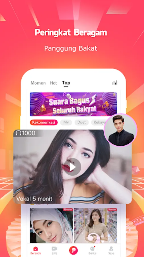 inilah platform bernyanyi dan social hiburan yang paling fashion untuk seluruh Indonesia.
