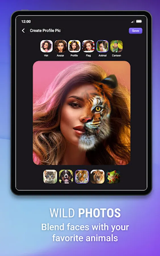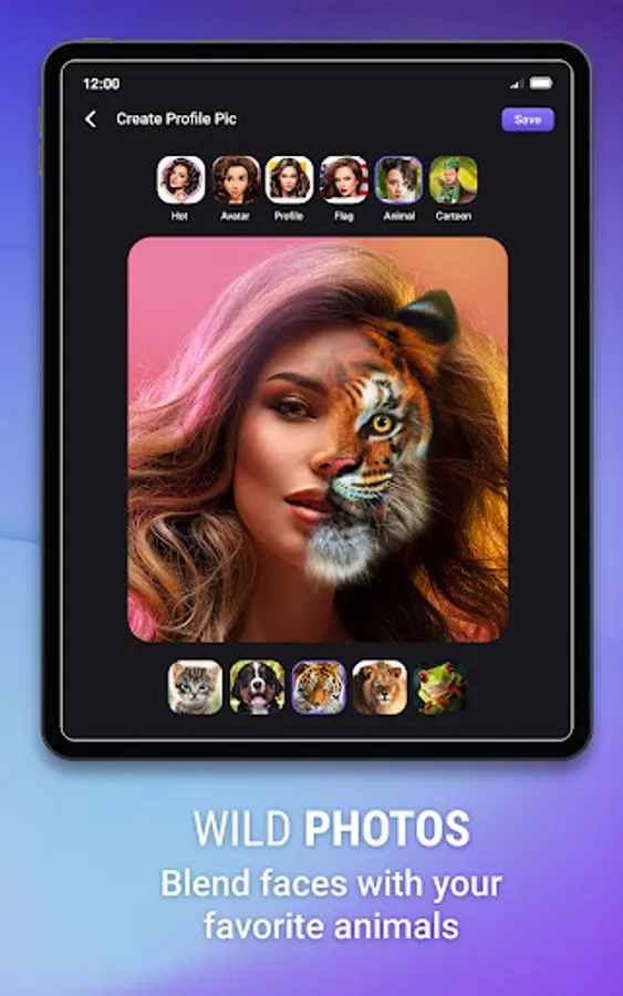 4. Animal Face - Wild Animal face blend with your photos. Half face and half wild animal from your photos.