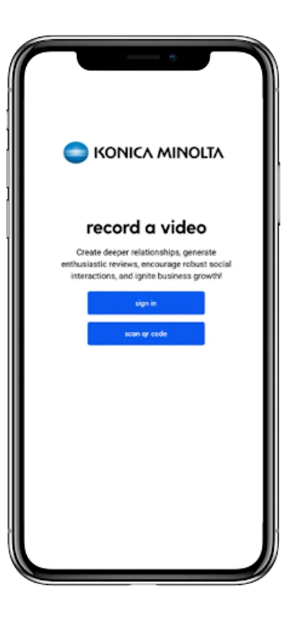 KM100VIDEO is a custom video recording application specifically designed for sales and customer service reps at Konica Minolta Business Solutions.