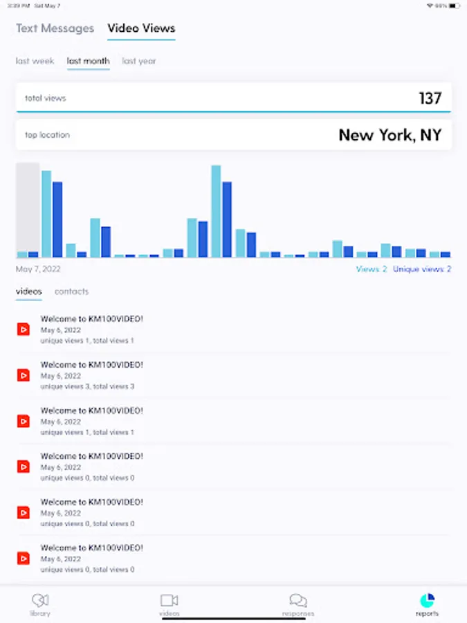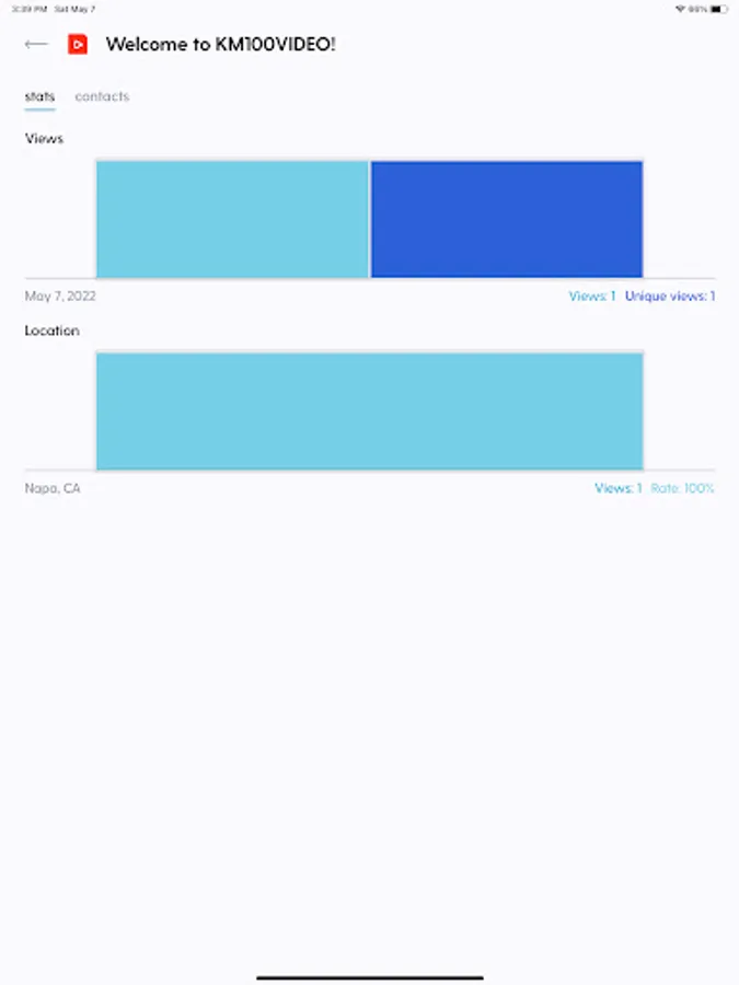 The KM100 companion app includes access to real-time reporting & analytics, including total video views, unique views, location views, and date views.