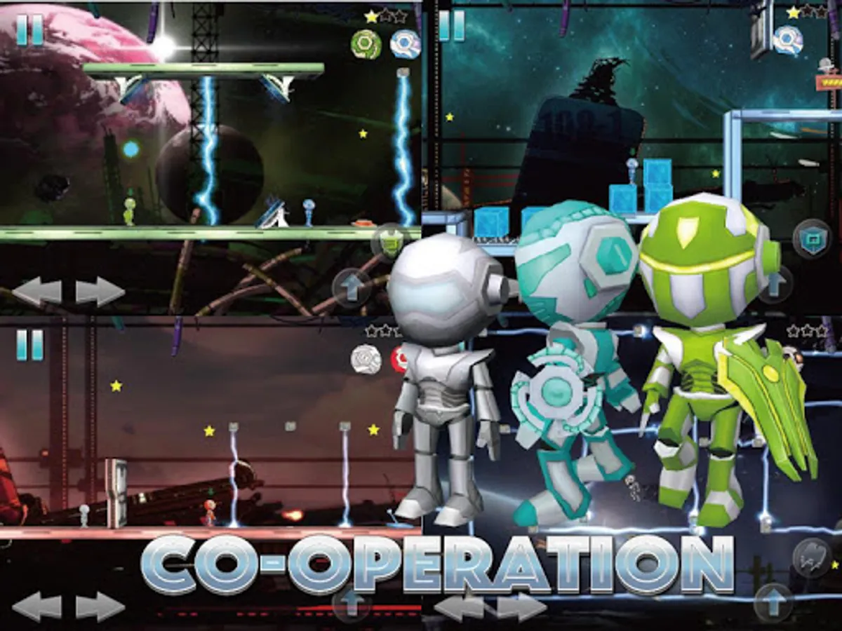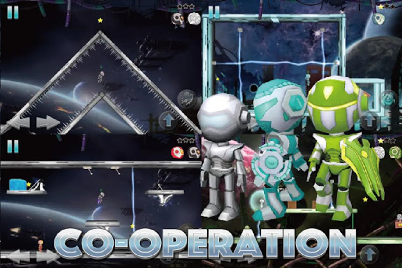 This Space edition includes 75+ new amazing levels, also spread over 5 large sections. Let your robots go through the new space environments! Use the unique abilities of each robot. Control them to help each other. Use the co-operate actions to solve all challenging puzzles.