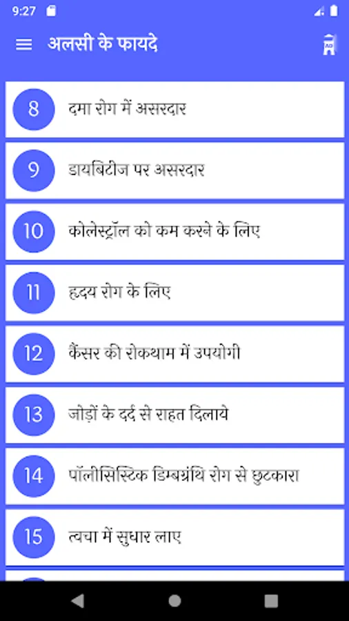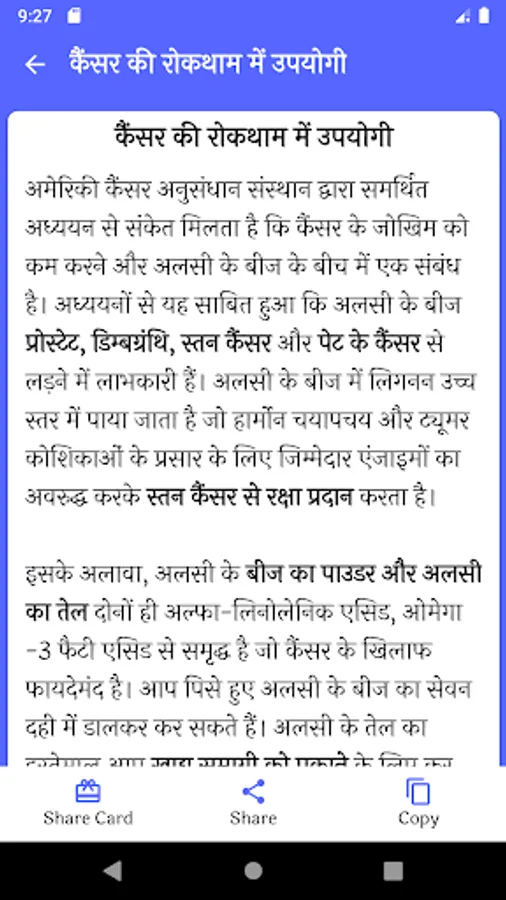 ◾️ ऍप में अलसी के 44+ फायदों को विस्तार से बताया गया है।