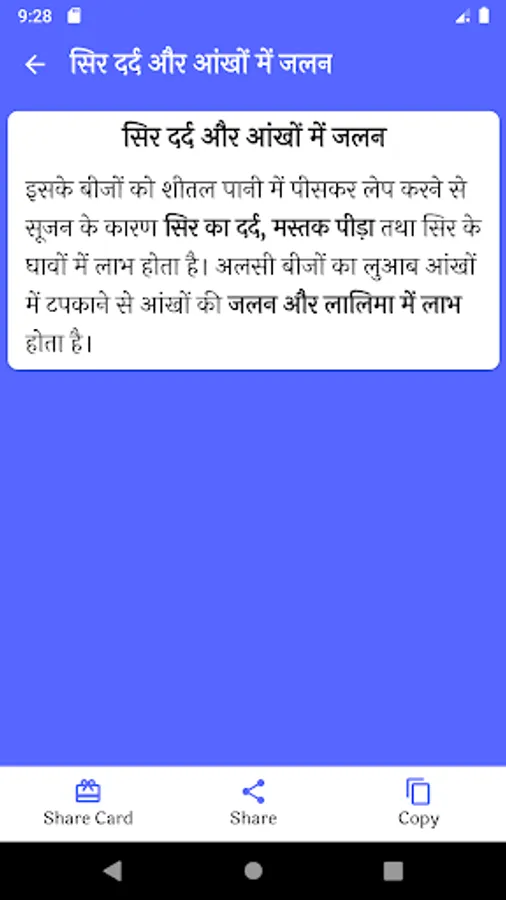 ◾️ ऍप में किसी भी टिप्स/टेक्स्ट को कार्ड (फोटो) या टेक्स्ट या कॉपी कर शेयर कर सकते है।