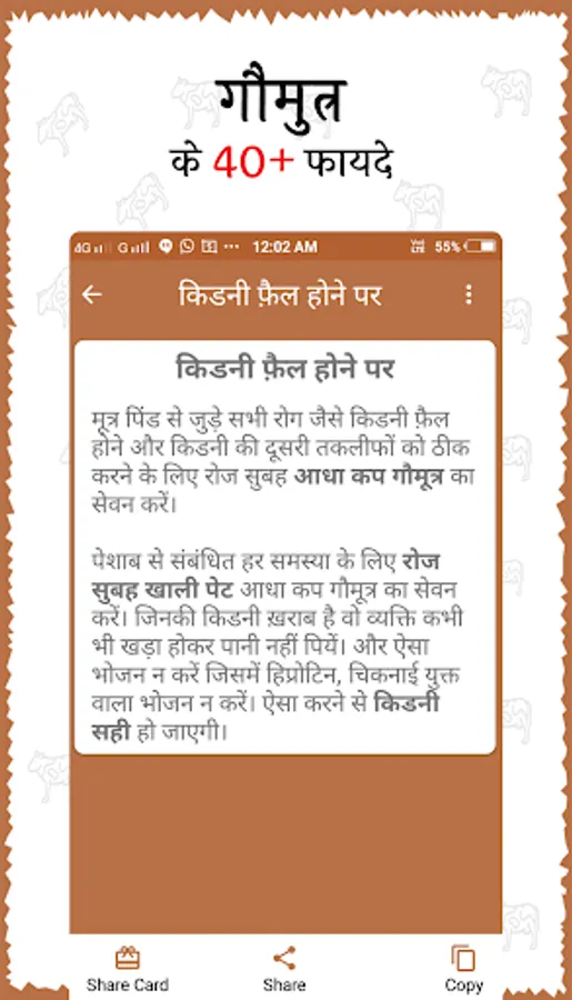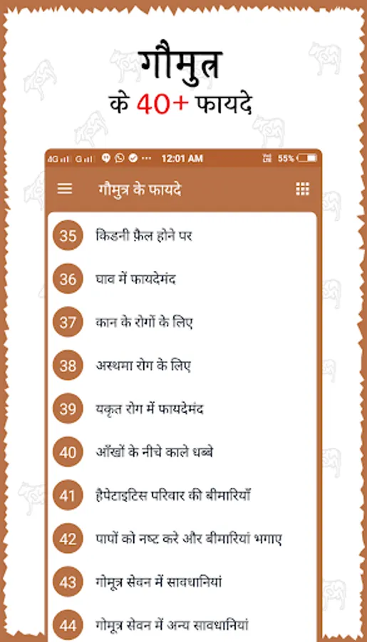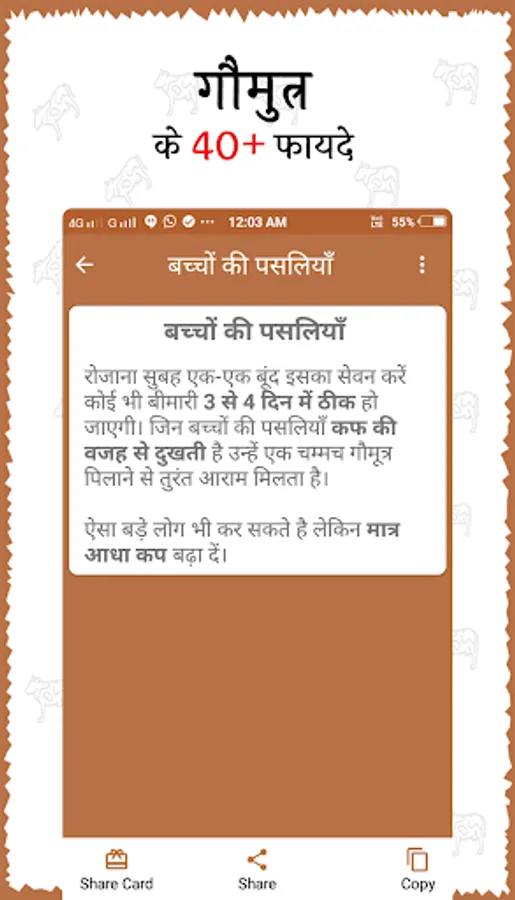 🐮 ऍप में गौमुत्र के 80+ फायदों को विस्तार से बताया गया है।