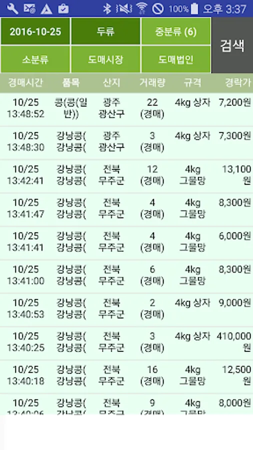 After selecting one auction, large category, Division, Sub Category, wholesale markets, wholesale corporation can be retrieved.