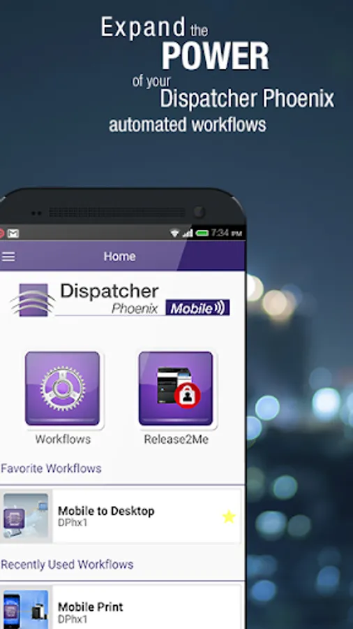 Dispatcher Phoenix Mobile (DP Mobile) expands the power of Dispatcher Phoenix by allowing traveling and field-based employees to easily access their document workflows from their smart phone or tablet. Addressing current workforce trends in which many employees are rarely in the office, DP Mobile is a convenient and secure Android mobile solution that ensures employees can maintain and even maximize their productivity while they are on-the-go. For example, insurance claim adjusters can submit photos from accident sites; legal associates can share important documents with their firm while they’re in court; and truck drivers can submit bills of lading while on the road. With this easy-to-use app all mobile workers can capture, process, route, store, print, and share files – from anywhere and at any time.