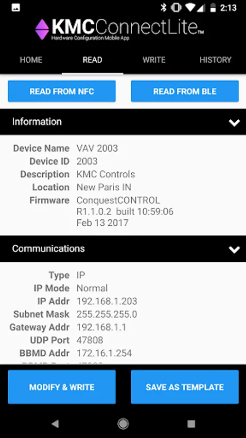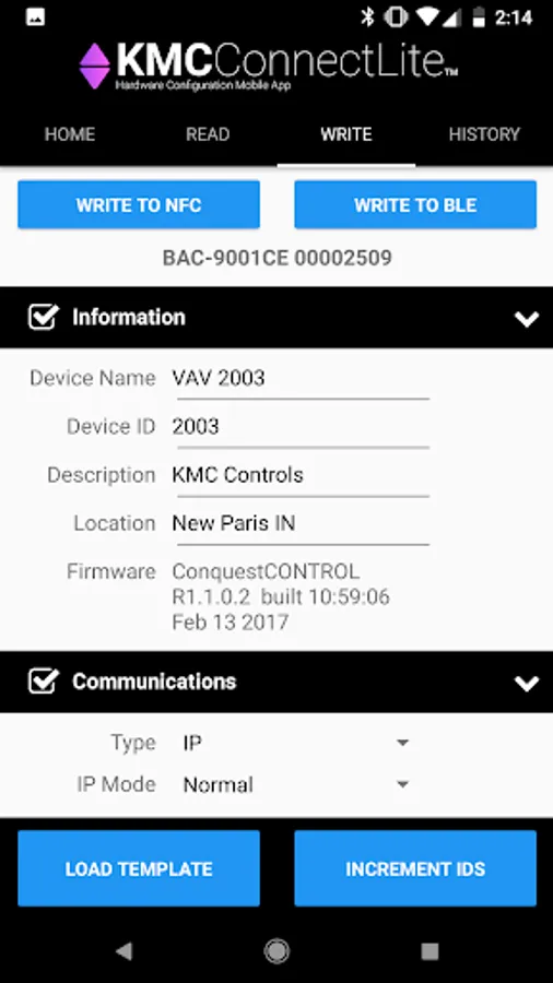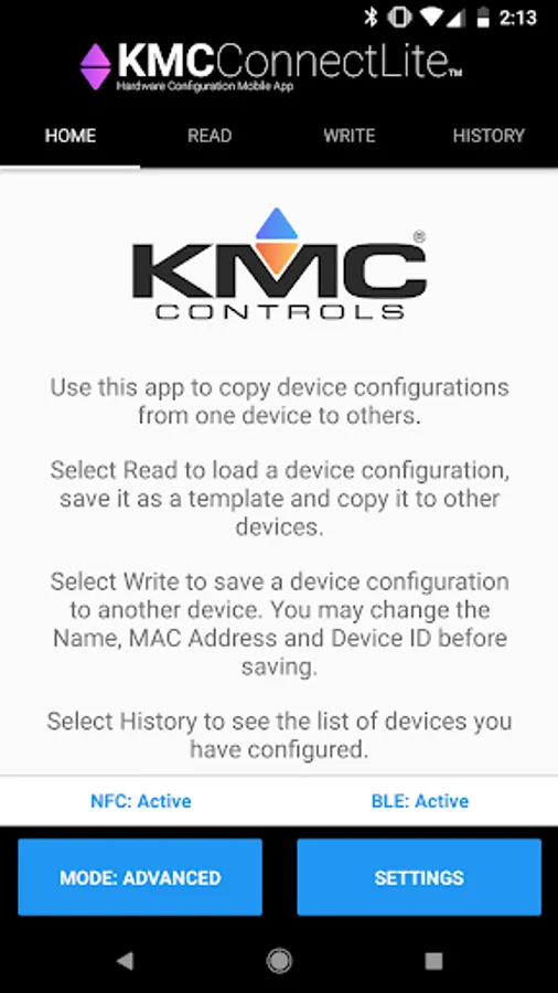 KMC Connect Lite saves time and money by providing fast in the office or in the field configuration of unopened and un-powered KMC Conquest controllers using NFC (Near Field Communication) technology.
