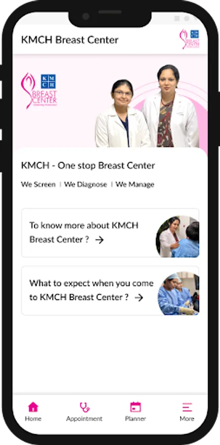 My Breast App is being offered by Kovai Medical Center and Hospital (KMCH). This App offers information on breast health to the women in southern India and encourage them to take periodic breast health check-up to stay healthy. The medical information provided in this app are verified by the panel of doctors at KMCH Breast Center and also found in the company's websites for further reference.