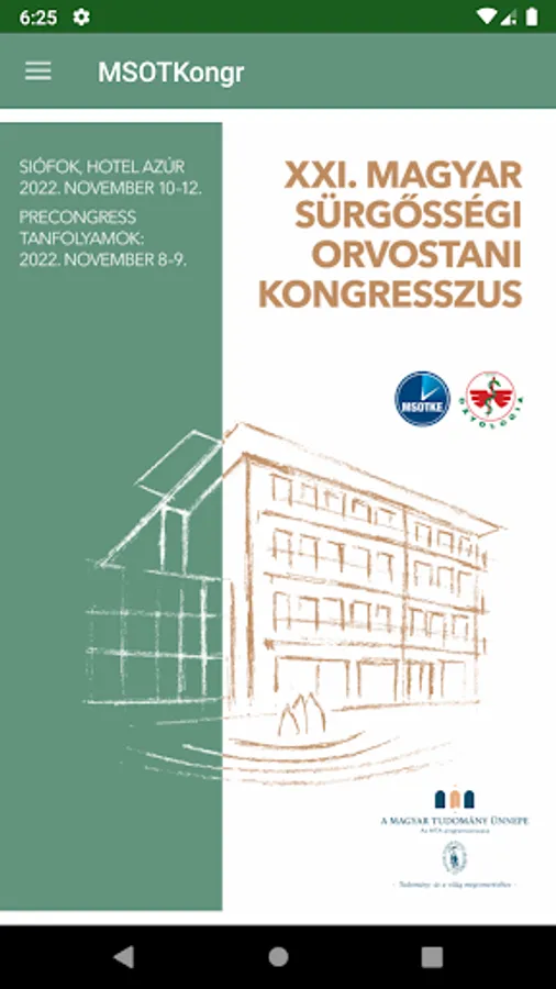 MSOTCongr is the XXI. The official mobile application of the Hungarian Emergency Medical Congress. Download it, and you will always have the most useful information about the congress in your pocket: the program with the current session, speaker introductions, site maps, navigation and other orientation materials. What's more, with the help of the application, you can also receive messages that warn you if the program changes, remind you of the start time of the performances marked as your favorite, or inform you of any information of public interest arising at the congress.
