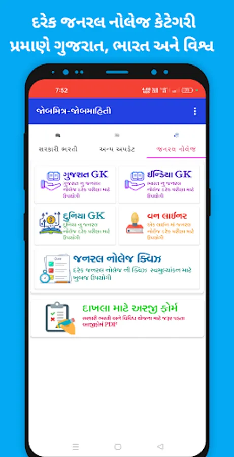This Application Provide Government Job Information and General Knowledge All Information Gujarati And English language