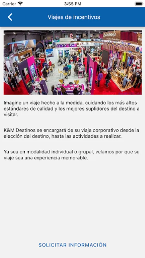 It is an app dedicated to the participants of the different conferences organized by the Travel Agency KMDestinos, in this app you can keep informed of all the details of the event, its sponsors, speakers, stands and program to be executed.