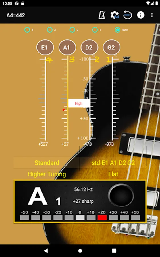 - A4 Frequency adjustment: choose 428~452 frequencies for A4 string.