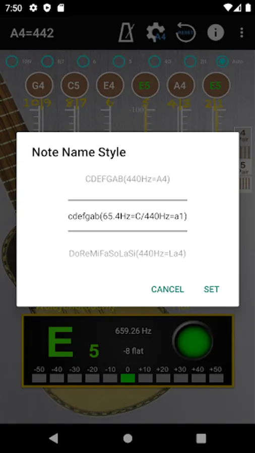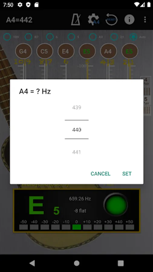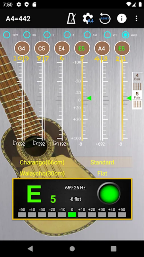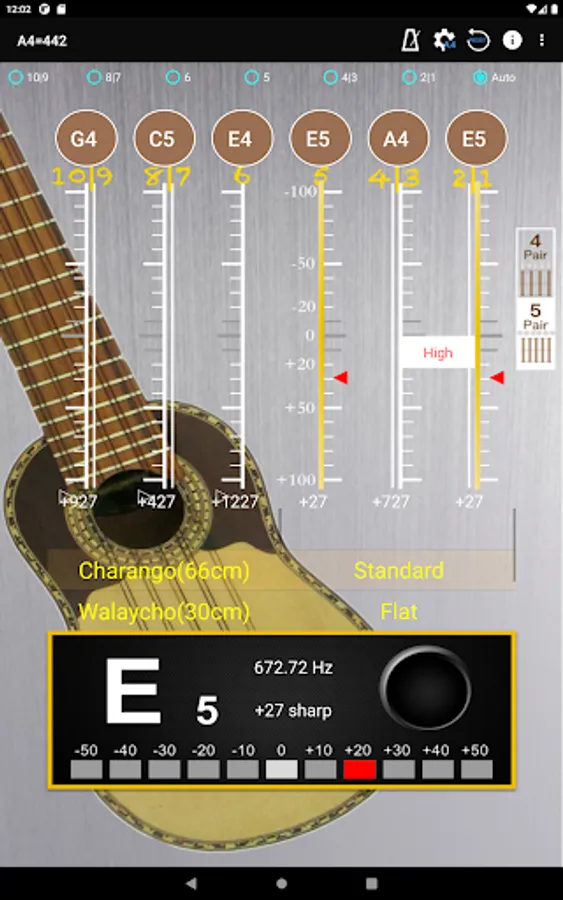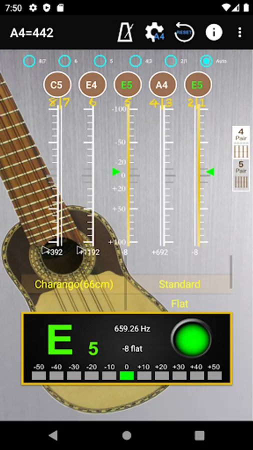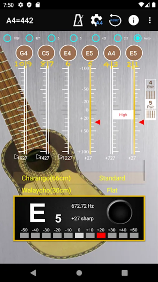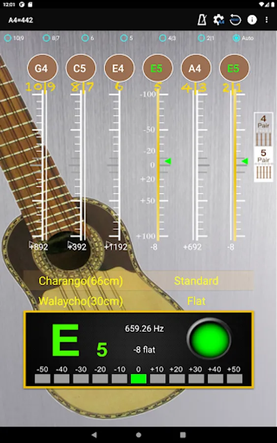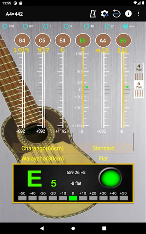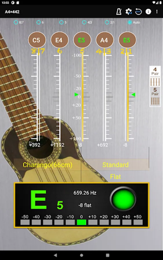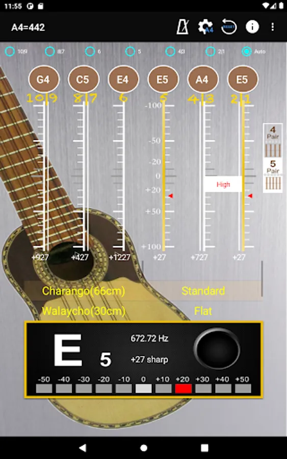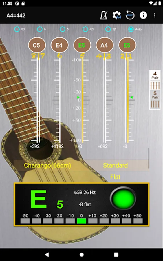 - A4 Frequency adjustment: choose 428~452 frequencies for A4 string.