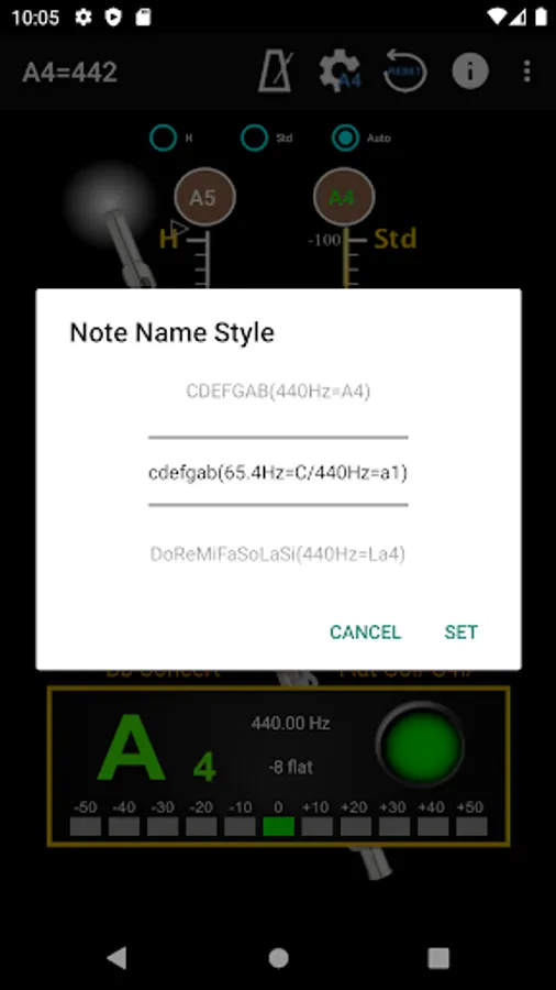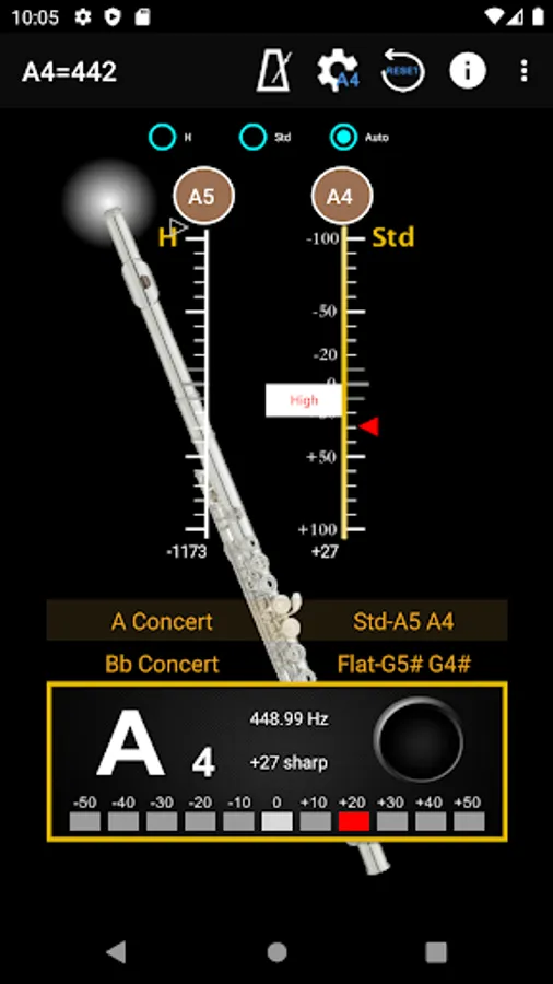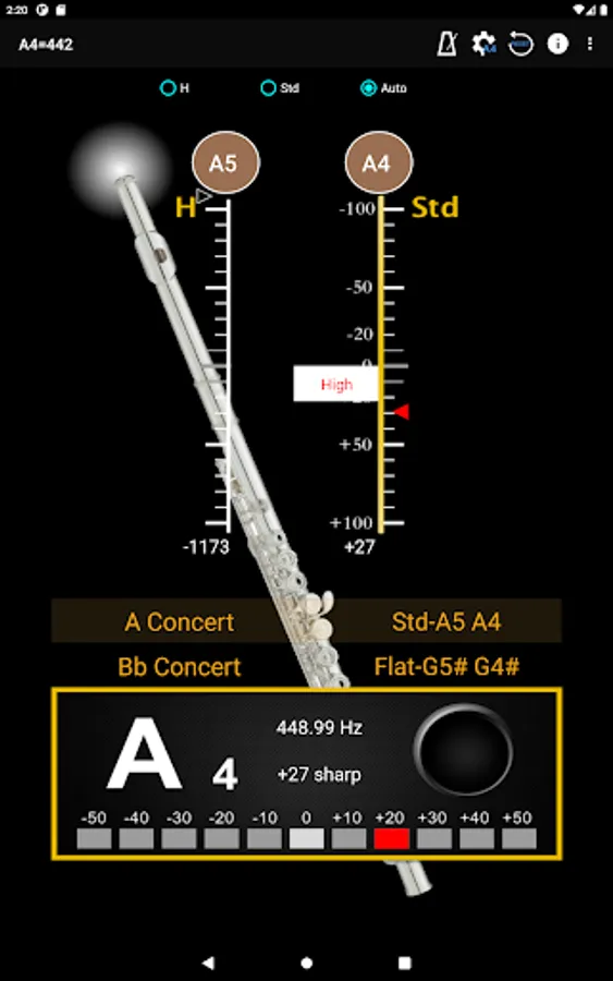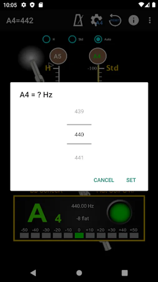 - A4 Frequency adjustment: choose 428~452 frequencies for A4 string.