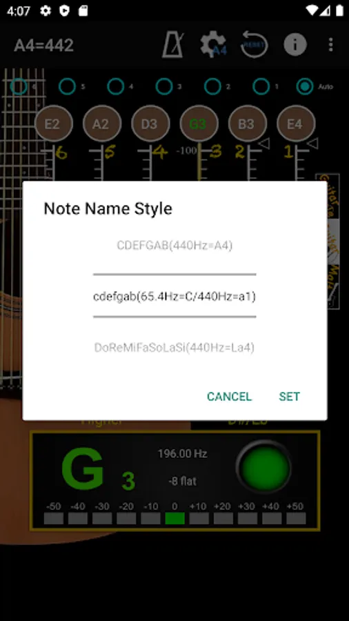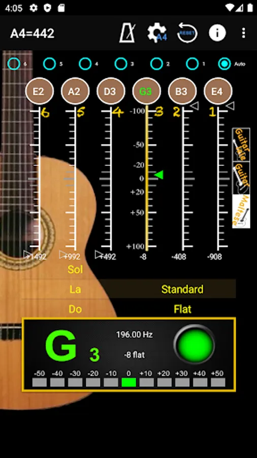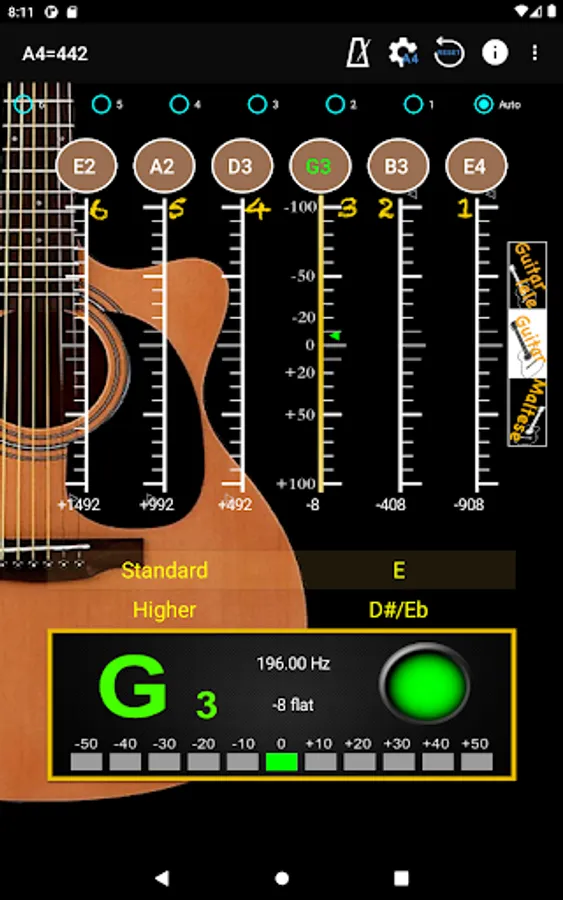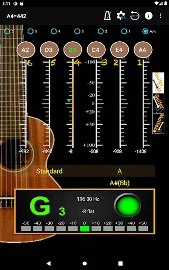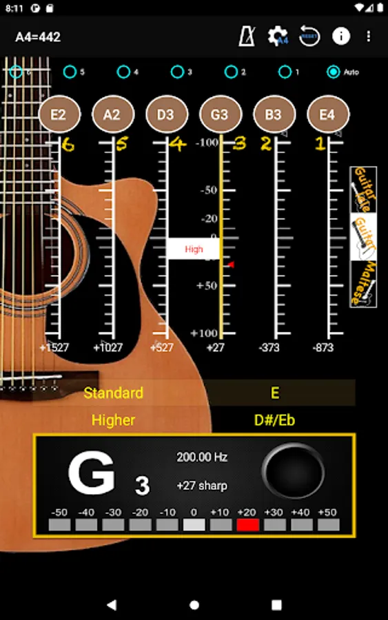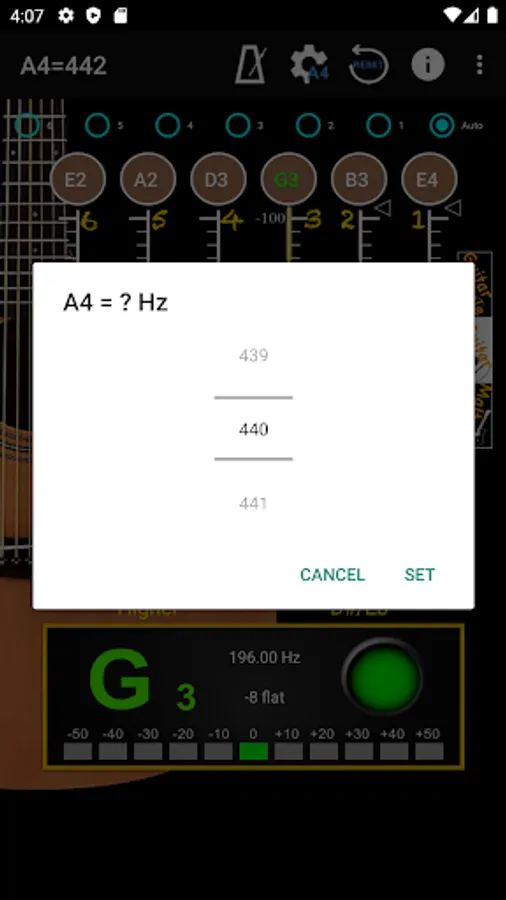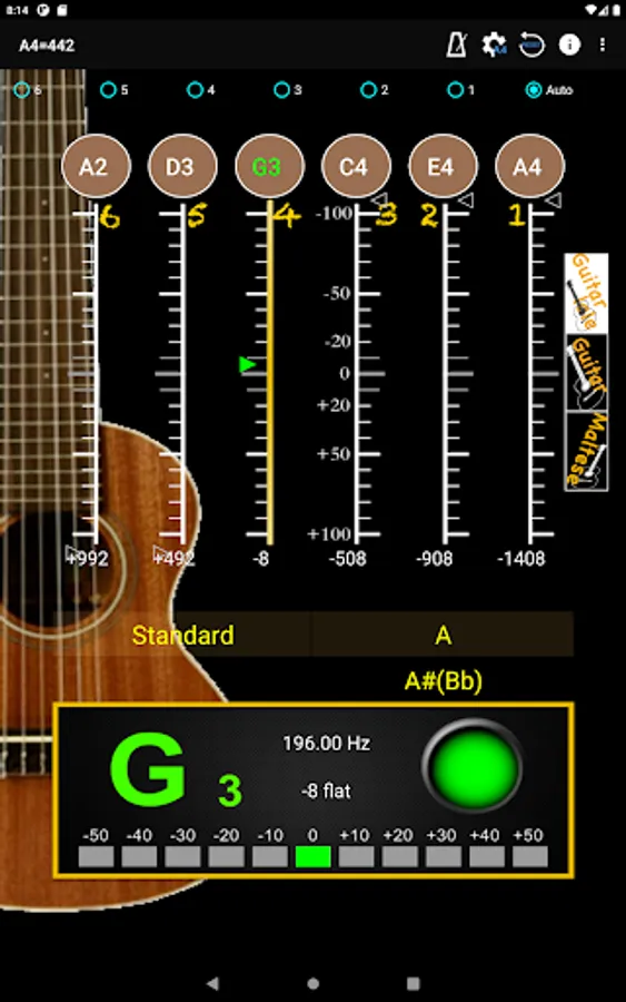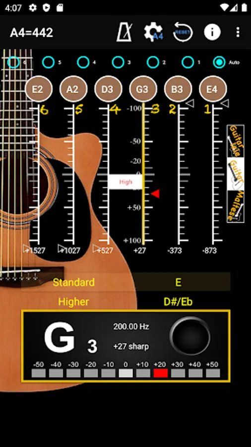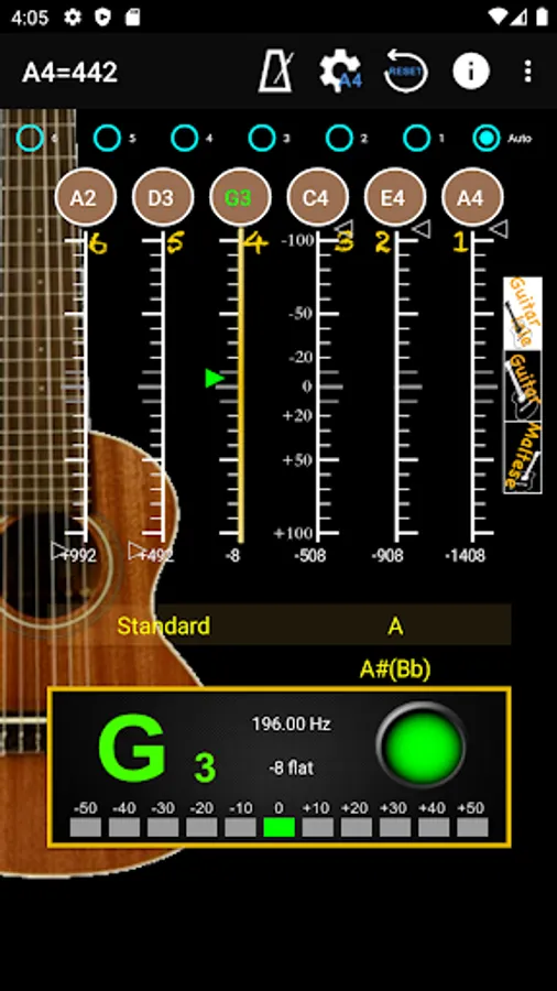 - A4 Frequency adjustment: choose 428~452 frequencies for A4 string.
