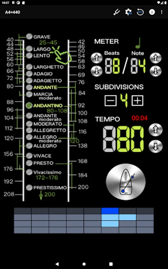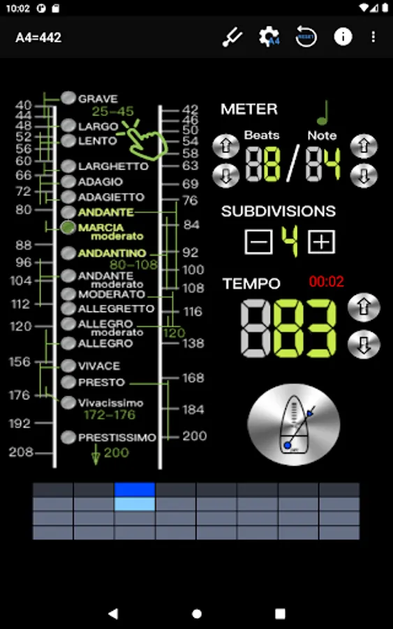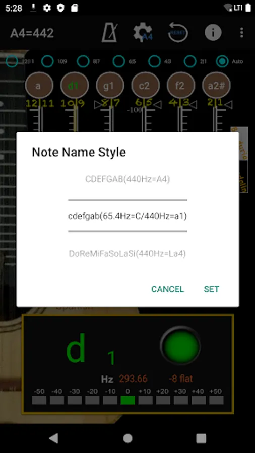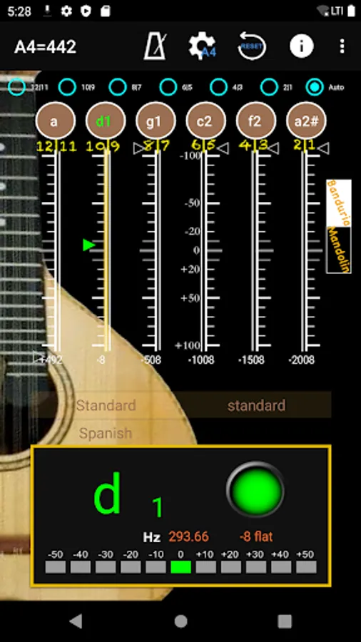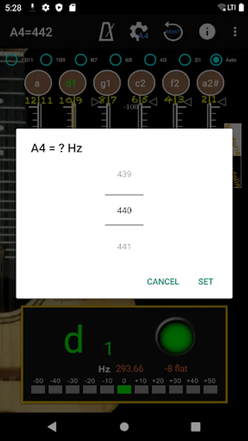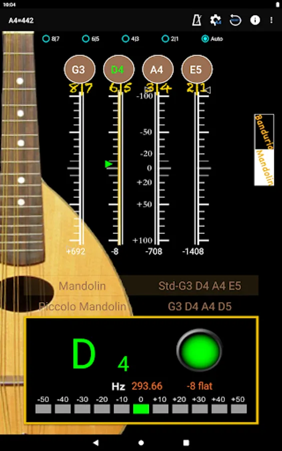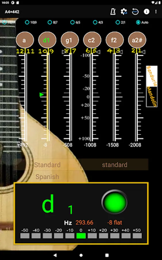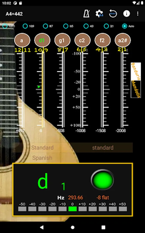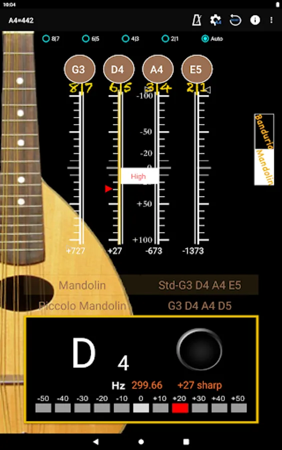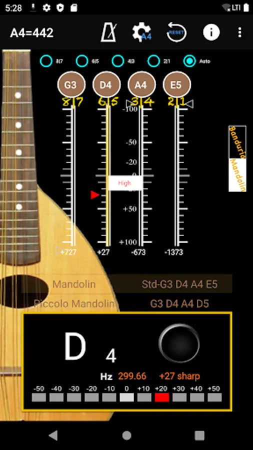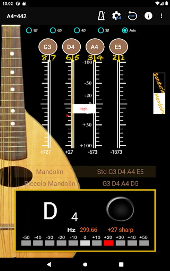 - A4 Frequency adjustment: choose 428~452 frequencies for A4 string.